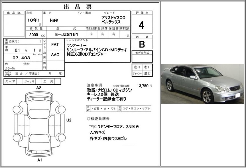 修復歴が無いマニュアルの人気車種ですので高額売却となりました。 出品票に外周一回りチェックが入っていますが、エアロパーツの底のスリキズでしたので4点評価だったと思います。 ありがとうございました。